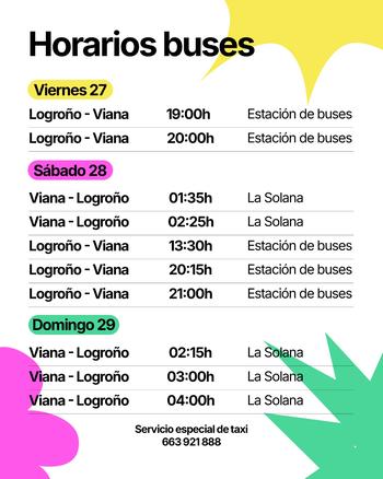 Bus Oficial Mugacu Fest con salidas desde Logroño (Estación de autobuses) . Horarios de Viernes y Sábado: * Salidas: - Viernes 27: 18:30 y 19:30 horas. - Sábado: 13.30; 20.15 y 21.00 horas * Vuelta desde Viana (La Solana): - Sábado: 3:00 y 4:00 horas. - Domingo: 02.15; 3 y 4 horas Entradas y #EstacionesSonoras #Mugacu #Viana
