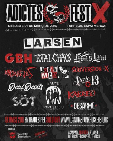 Larsen, GBH, Total Chaos, Lion’s Law, Jokin MCD, Arpaviejas, Subversión-X, Suicidas 13, Deaf Devils, Kabreo, Kante Pinrelico (40è aniversari), Söt i Desarme (Colòmbia).