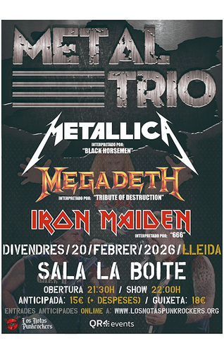 Vente a revivir con nosotros sus temas más cañeros, de la mano de sus mejores bandas tributo: "666" (Iron Maiden), "TRIBUTE OF DESTRUCTION" (Megadeth) y "BLACK HORSEMEN" (Metallica).