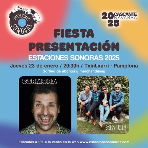 Fiesta de Presentación Estaciones Sonoras 2025 en el bar Txintxarri de Pamplona. Concierto Smile y Angel Carmona Dj Entradas y más información en www.estacionessonoras.com